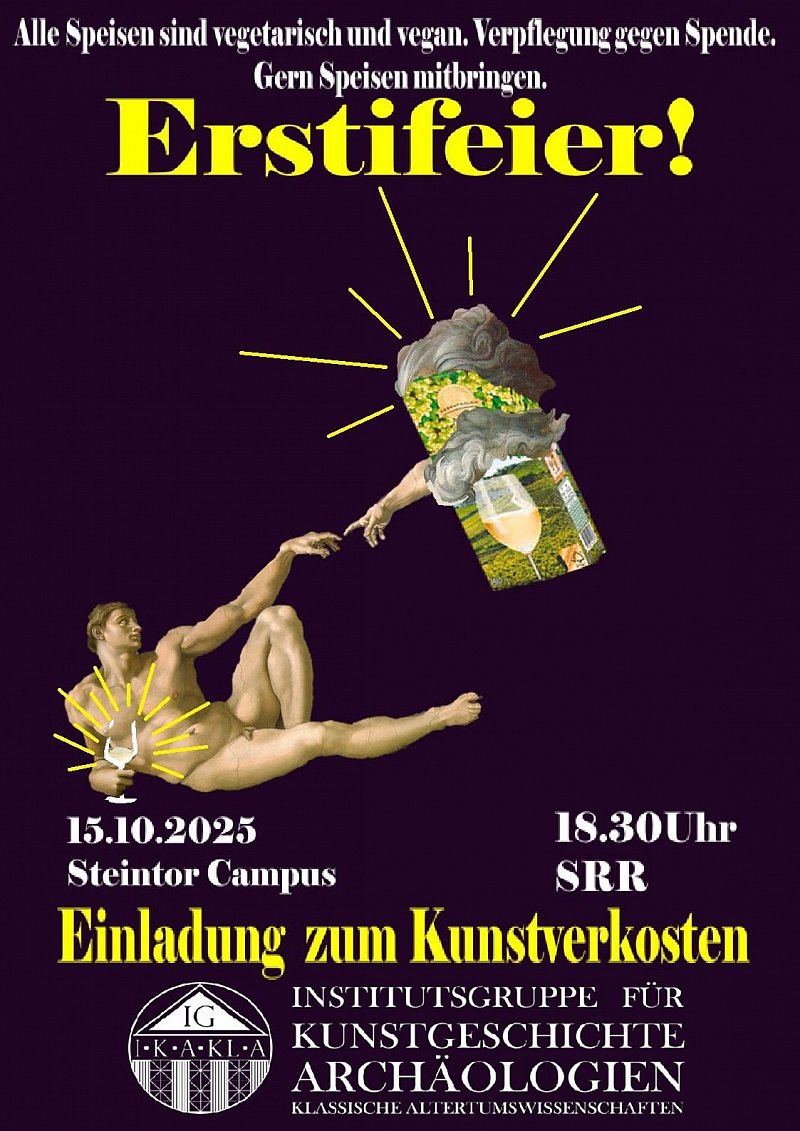 Die Institutsgruppe lädt herzlich zum diesjährigen Semesterangrillen am 15.10.25 ab 18:30 im SSR am Steintorcampus ein, mit dem alle neuen und altbekannten Studis und Angehörige des Instituts zum Wintersemester begrüßt werden sollen. In gewohnter Manier wird es vegetarisches und veganes Grillgut und Getränke gegen Spende geben. Gern gesehen sind auch Spenden und Beiträge jeglicher Art zum Essensbuffet (bitte Allergene kennzeichnen!) oder der Feier selbst.